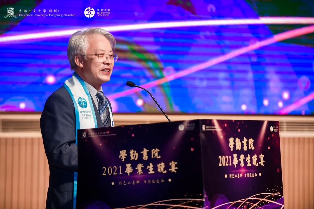 4月27日,香港中文大學(xué)(深圳)學(xué)勤書(shū)院2021畢業(yè)晚宴在隱秀山居酒店舉行,香港中文大學(xué)(深圳)副校長(zhǎng)朱世平教授,副校長(zhǎng)阮健驄先生,協(xié)理副校長(zhǎng)、學(xué)勤書(shū)院院長(zhǎng)顧陽(yáng)教授,正中集團(tuán)總裁、正中公益慈善基金會(huì)理事鄧學(xué)勤先生出席晚宴并發(fā)表講話(huà)。學(xué)勤書(shū)院院務(wù)成員、舍監(jiān)導(dǎo)師、附屬老師及200余名畢業(yè)生齊聚一堂,共同慶祝這難忘時(shí)刻。
