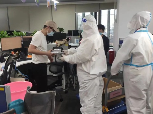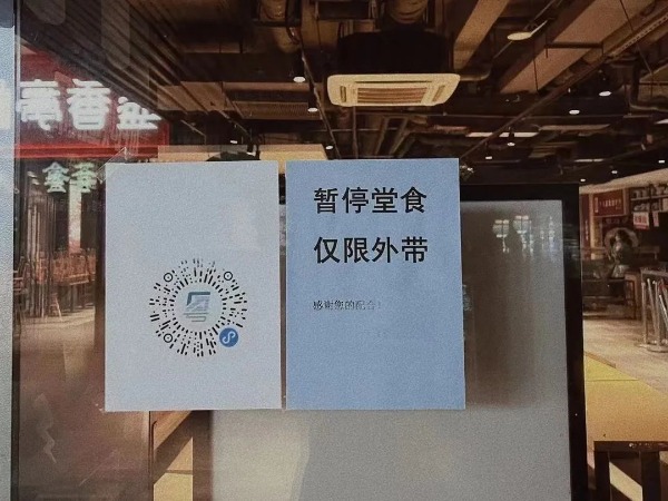 為響應政府號召,園區要求“餐飲場所(含公共食堂、單位食堂)一律暫停堂食,僅提供到店自取、外賣送餐和盒飯分餐服務。”
