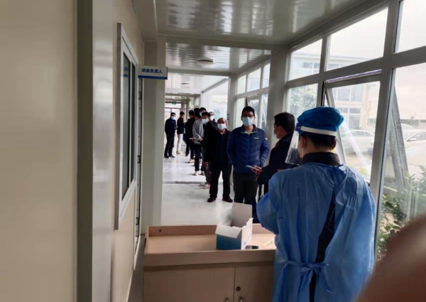同時,3月9日晚,濱海灣新區黨工委委員楊永強帶隊到正中科學園項目進行疫情工作檢查及指導,項目部在檢查之后對管委會提出的指導意見進行記錄,項目負責人迅速召開工作部署會議。對防疫工作要求進一步壓實基礎,責任到人,對檢查提出的指導意見進行部署,要求舉一反三,按時完成,嚴格按照防疫要求執行。各相關防疫人員立即行動。首先對生活區商店嚴格落實進店測溫、出示粵康碼、佩戴口罩等防疫要求。并主動邀請醫院核酸醫務人員到項目處重點關注人員、重點崗位人員進行核酸檢測,檢測80余人。