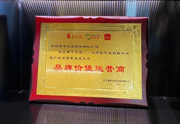 正中企業(yè)服務(wù)榮獲 "2021 年度大灣區(qū)產(chǎn)業(yè)園區(qū)品牌價值運(yùn)營商"