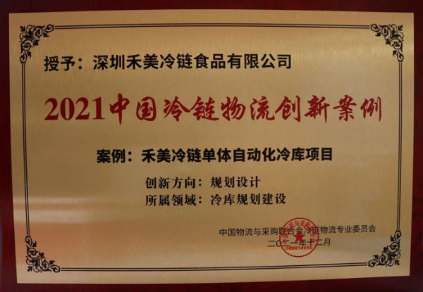 禾美冷鏈作為此次參會方,憑借亞洲最大的單體自動化冷庫項目,榮獲“2021中國冷鏈物流創新案例獎”。